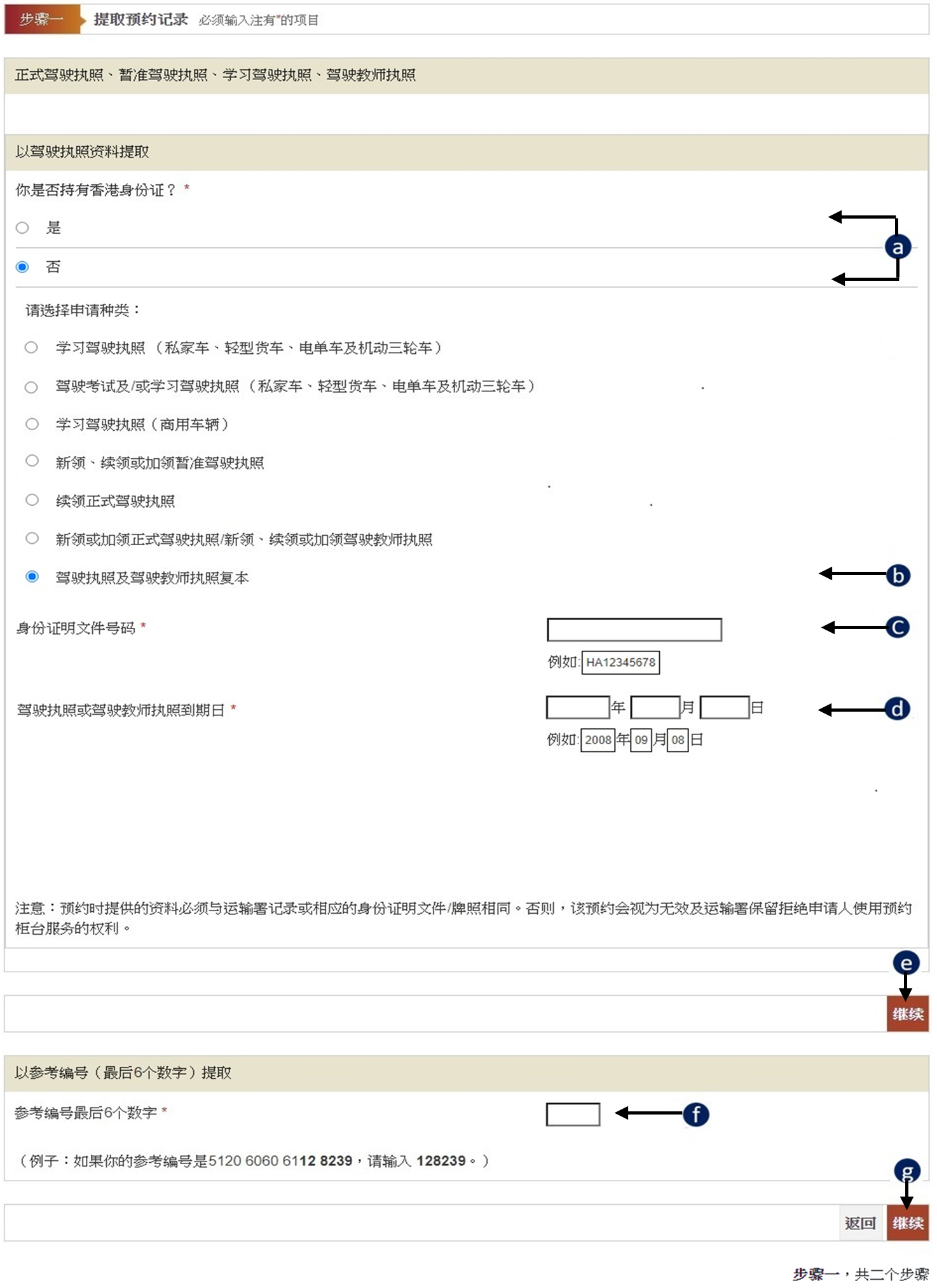如果你有预约参考编号, 你可以按步骤 “f” 和 “g” 提取