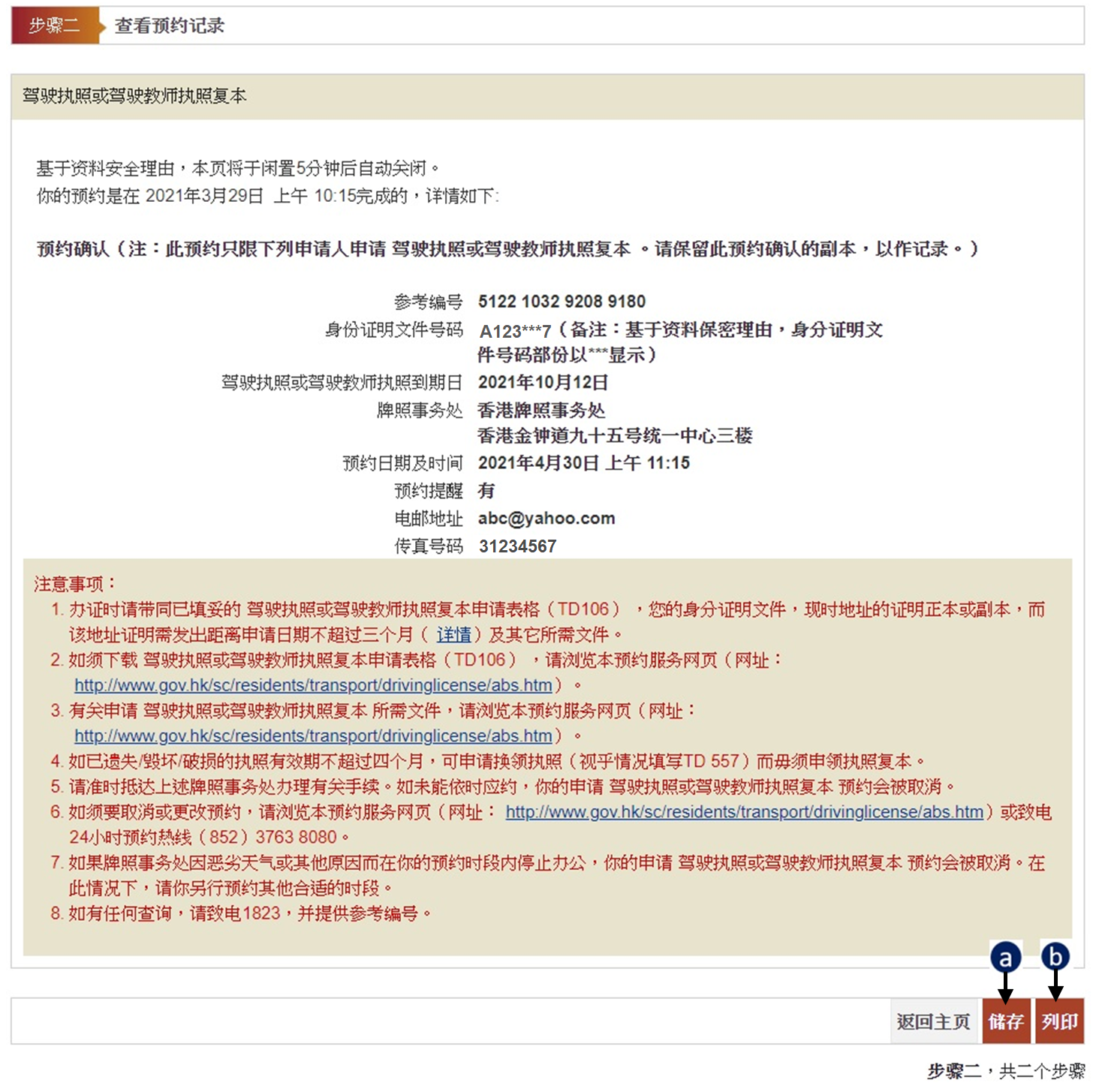 步骤二 - 查看预约记录 - 驾驶执照及驾驶教师执照复本