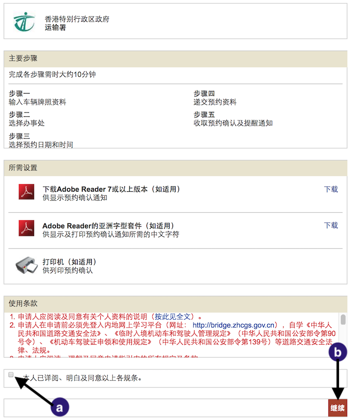 预约「港珠澳大桥澳门口岸泊车转乘计划」柜位办理申请网上示范