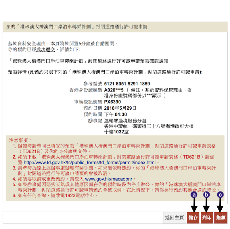 「港珠澳大橋澳門口岸泊車轉乘計劃」封閉道路通行許可證申請預約服務網上示範